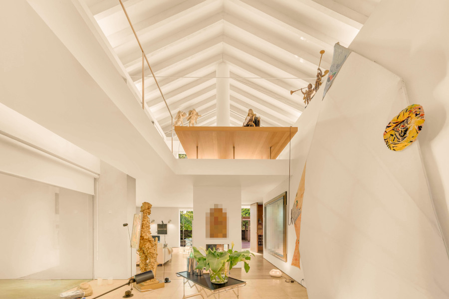 All’esterno, immerso nel giardino con piante secolari, si trova un ampio atelier d’artista con camino/stufa e grandi vetrate sul prato e sul bosco. In un’altra zona del parco si trovano la piscina e il relativo locale tecnico.
