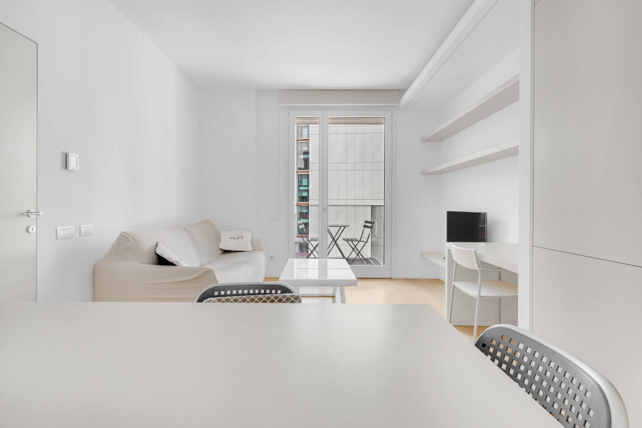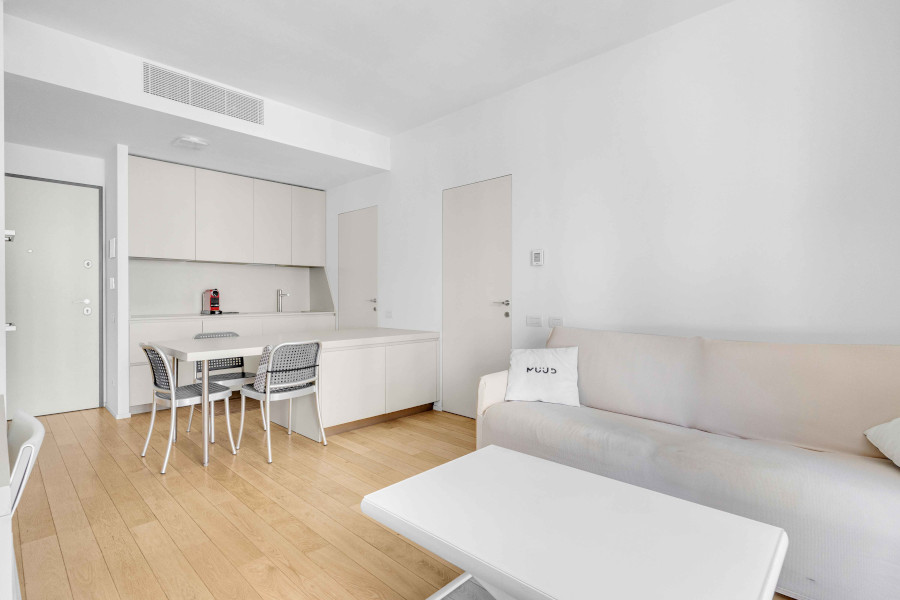 L’appartamento è composto da: ingresso, soggiorno con cucina a vista, camera matrimoniale, bagno e terrazzo.