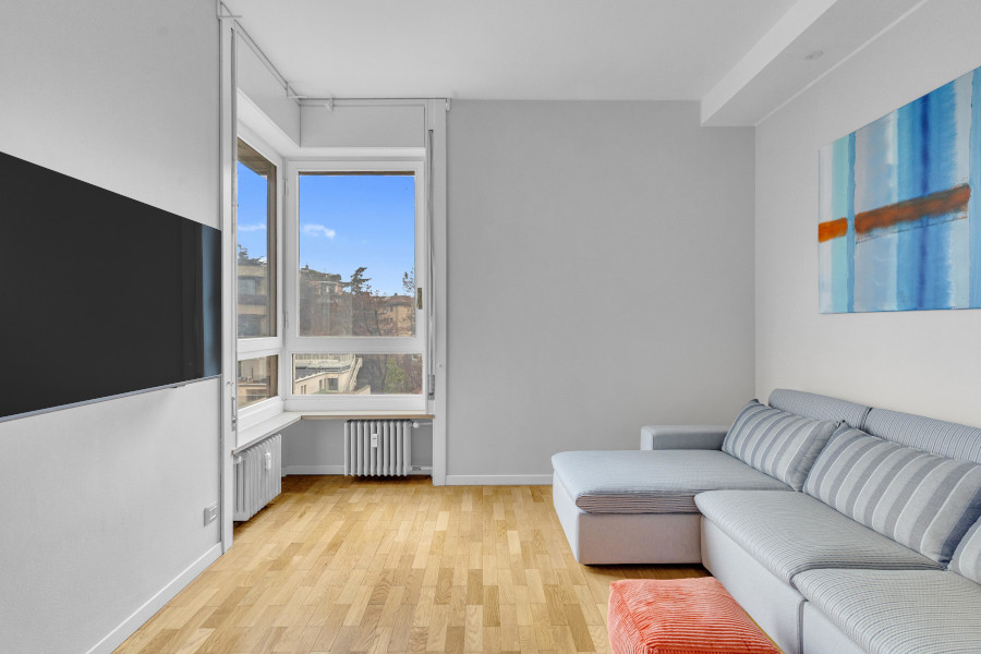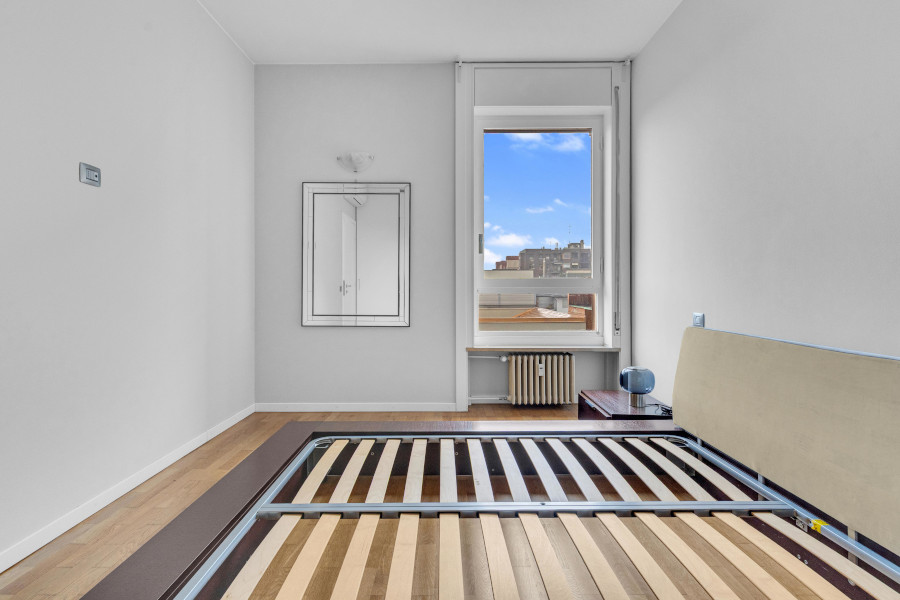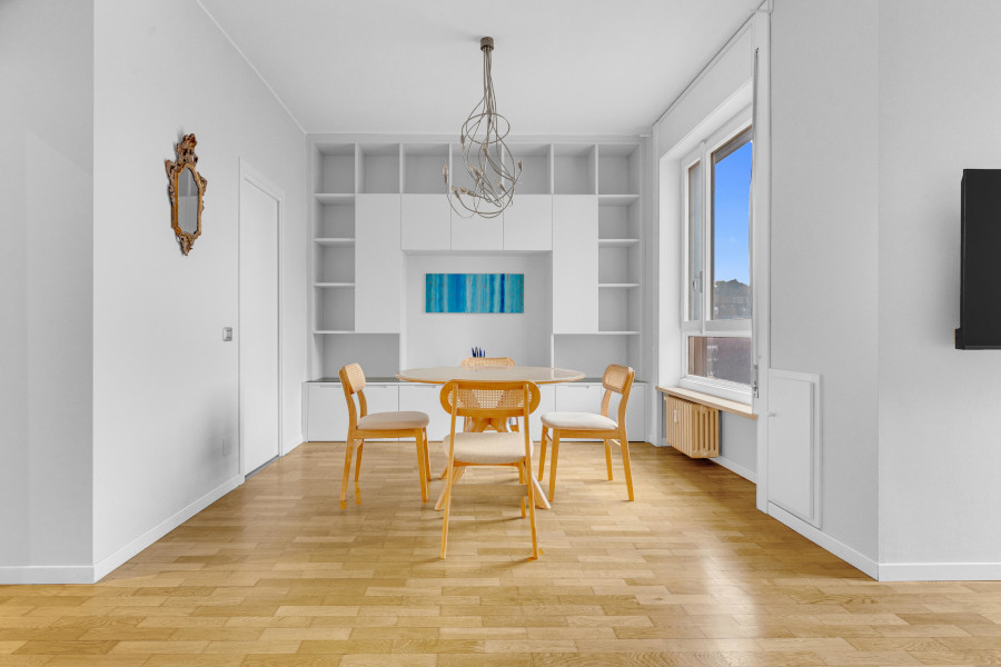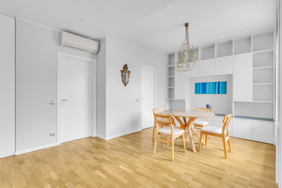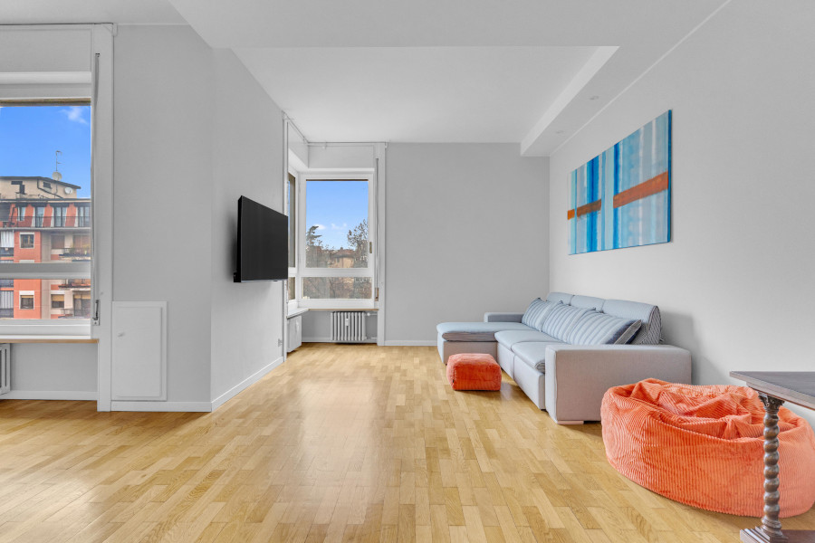 L'appartamento è sito al quinto piano di un palazzo signorile, che si trova a pochi minuti dalla fermata della MM1 Buonarroti e dall'innovativo quartiere di CityLife.