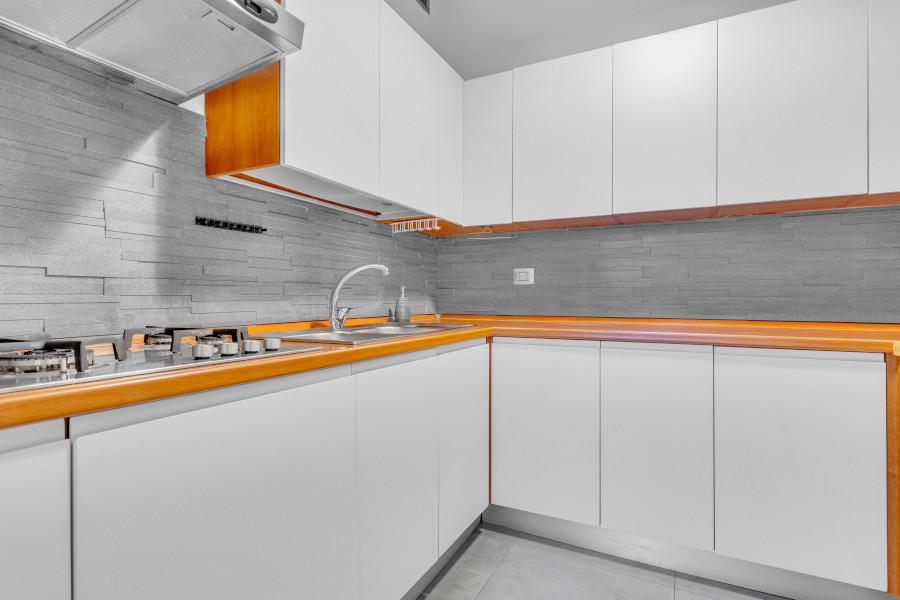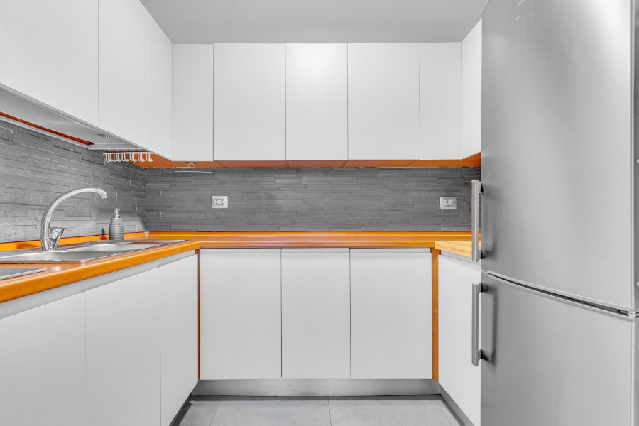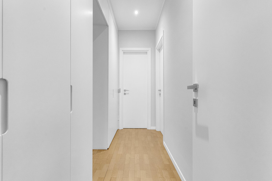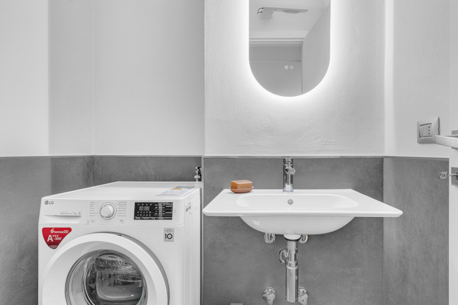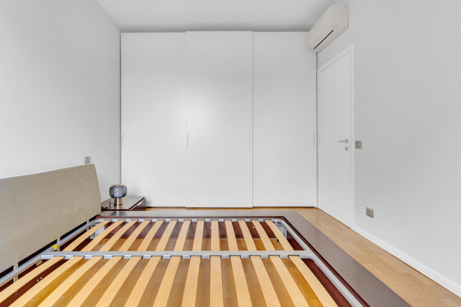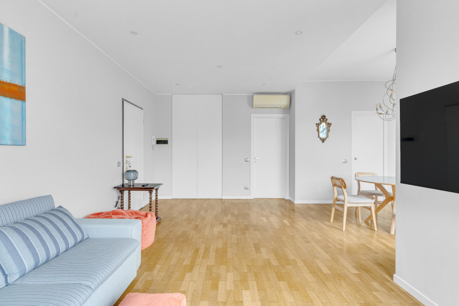 Il bilocale è costituito da un ampio e luminoso soggiorno con zona pranzo, cucina separata, camera da letto matrimoniale, due bagni e disimpegni.
