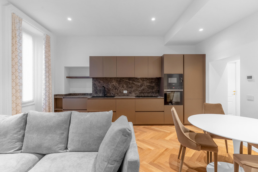 L'appartamento si trova al primo piano di un elegante edificio d'epoca con fascino storico. Via Castelfidardo si trova nel cuore del vivace quartiere Moscova a Milano: posizione strategica tra Porta Nuova e Brera, vicina alla metropolitana e ai tram.