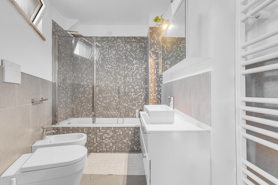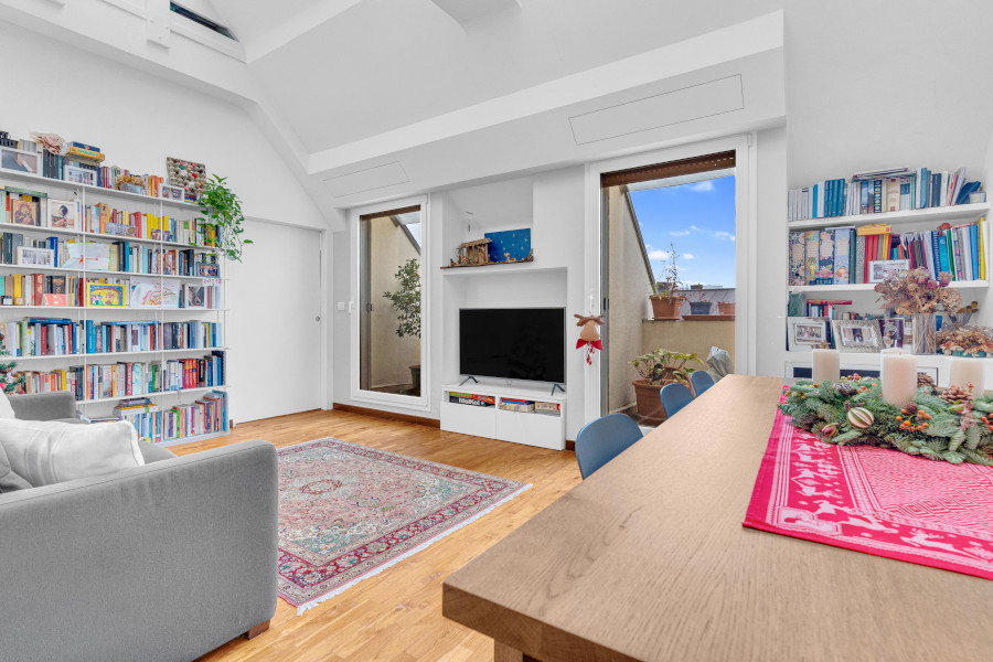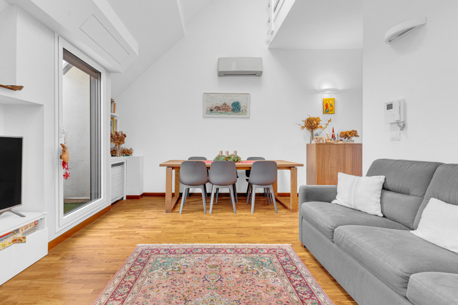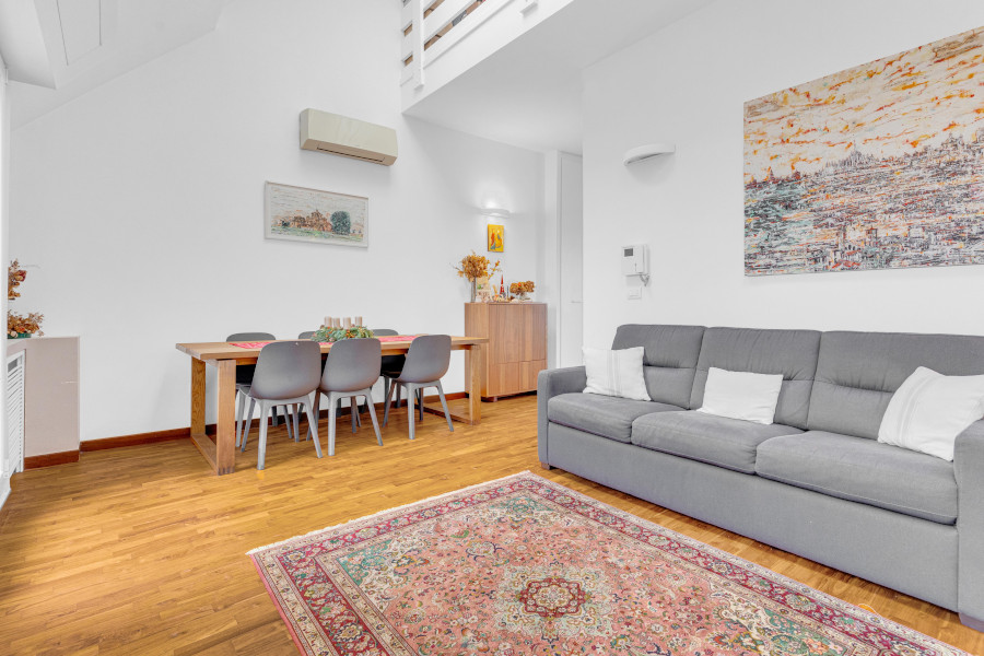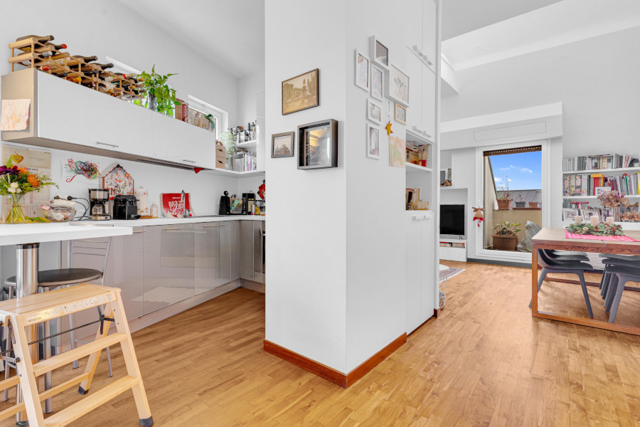 In zona ben servita, proponiamo in vendita un elegante e luminoso trilocale su due piani - sesto e settimo - composto da: